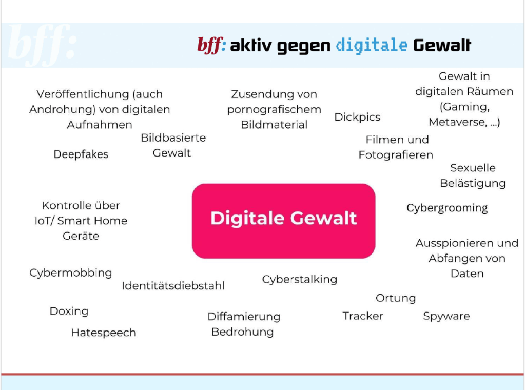 Michaela Burkhard, Referentin des Bundesverbands Frauenberatungsstellen und Frauennotrufe, beschrieb die digitale Bedrohungslage, die Frauen im sozialen Nahraum erleben: Stalking, Überwachung, Drohungen und Kontrolle mit digitalen Mitteln sind Formen partnerschaftlicher oder sexualisierter Gewalt, von denen Frauen zunehmend betroffen sind. Digitale Gewalt überschreitet die Grenzen der Privatsphäre, findet über viele verschiedene Kontaktmöglichkeiten statt und hat für die Betroffenen schwerwiegende Folgen. Nur ein strukturiertes Vorgehen verbunden mit digitaler Kompetenz von Fachberaterinnen kann den Schutz von Frauen und Kindern vor digitaler Gewalt erhöhen. Es braucht Fachwissen im Schutz- und Hilfesystem, ebenso bei Polizei, Justiz und Verwaltung.
