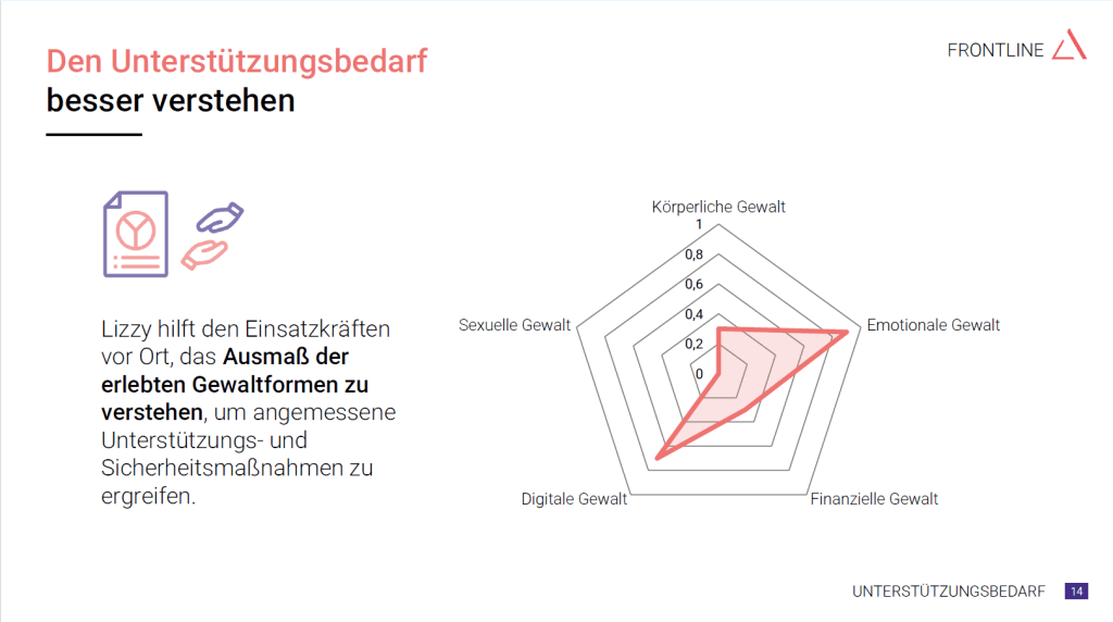 Lizzy ist die erste KI-gestützte Gefährdungsanalyse, die auf bundesweiten repräsentativen Daten basiert und Fachkräfte wie Polizei und Sozialarbeiter/innen bei der präzisen und verlässlichen Einschätzung von Risiken und des Unterstützungsbedarfs unterstützt. Lizzy wird bereits von Beratungs- und Interventionsstellen, Frauenhäusern und Schutzunterkünften in acht Bundesländern verwendet.